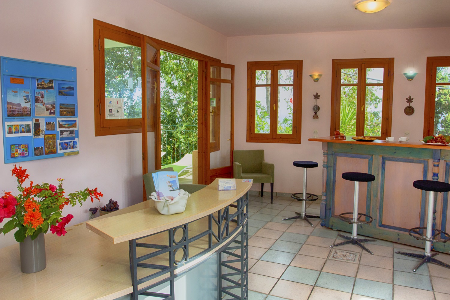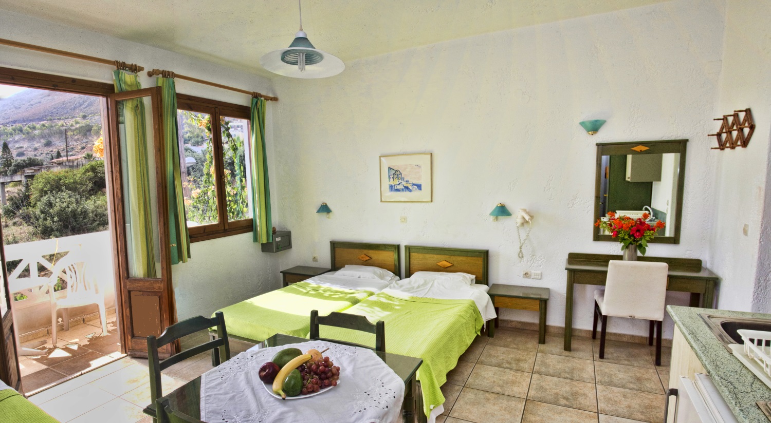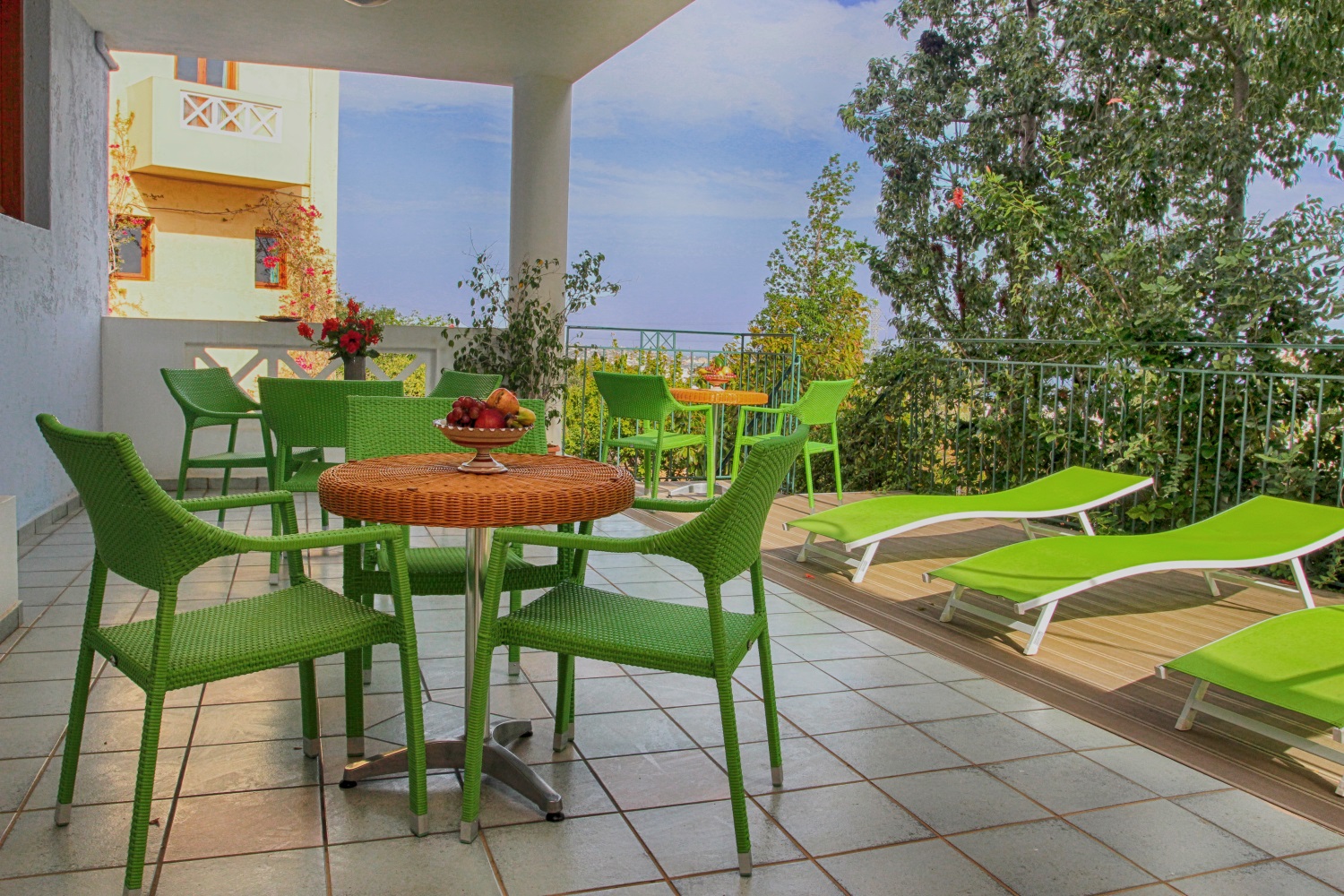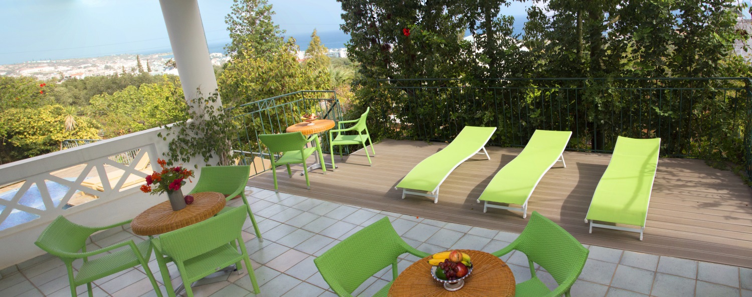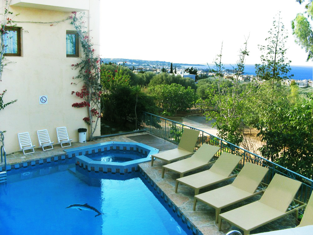 A nice swimming pool with jacuzzi and sunbeds, excellent views of the Kretan sea, dark green oils, the port of Hersonissos and the sounds of the birds and cicadas surround you there. You have plenty of choices to experience .